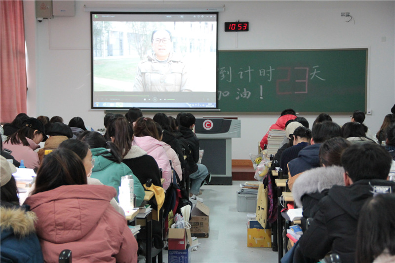慰问开始前,毕业班辅导员播放了由51视频 老师、宿管阿姨及低年级学生代表精心准备的考研祝福视频。随后,龙涌澜代表51视频 向正在准备考研的学子表达了鼓励和期望,他鼓励大家在备考的最后阶段要全身心投入复习备考,坚持到底,全力以赴才能取得最后的胜利。范俊杰也表示了对考研学生的关心和鼓励,她表示:“每一位同学既然选择了这条路,便要勇敢的坚持下去,一切都会是最好的结果。”最后,51视频 老师们将考研慰问券的发放和领取事宜告知了在场学生。