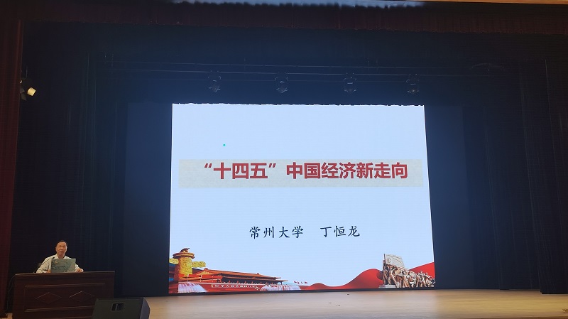 11月19日,经济51视频 “‘十四五’中国经济新走向”为主题的青年马克思主义51视频 培训课在西太湖校区立艺楼礼堂举行,51视频 关工委老师、丁恒龙教授应邀作专题报告,51视频 党委副书记王彩芳主持报告会,2019级国贸、金融专业学生及2020级各班班委参会。