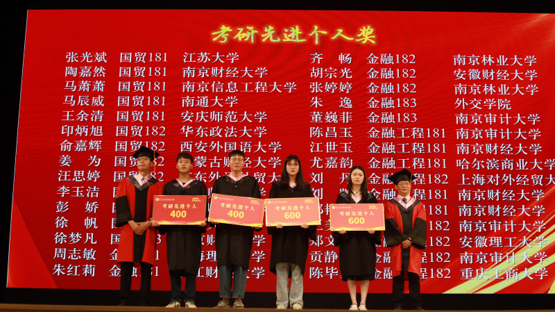 金融学系主任曹启龙、金融工程系主任姚惠泽颁发考研先进个人奖