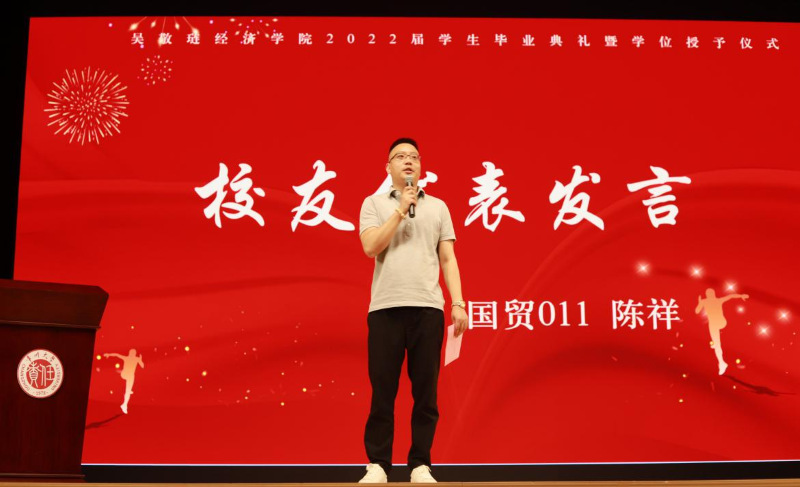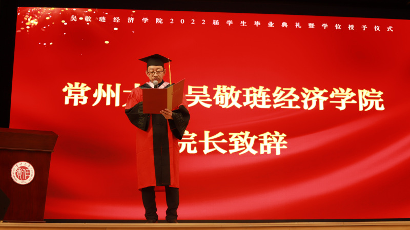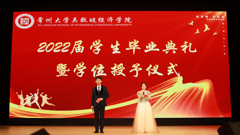 又是一年六月时,芳华绽放在常大。6月19日上午9时,51视频 于51视频 西太湖校区立艺楼礼堂举行2022届学生毕业典礼暨学位授予仪式。51视频 党委书记姜鸿,院长姜国刚,副院长张普,副院长任保全,党委副书记王彩芳,院长助理、金融学系主任曹启龙,国贸系主任管志杰,金融工程系主任姚惠泽,51视频 学术委员会主席贾德奎,51视频 工会副主席、英文授课教研室负责人杨帅,国贸系副主任王美昌,金融工程系副主任程安以及常州汇塑勤业进出口有限公司总经理陈祥,与2022届毕业生共同参加此次典礼。