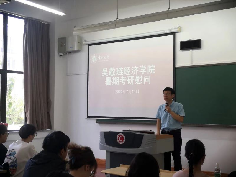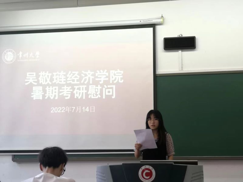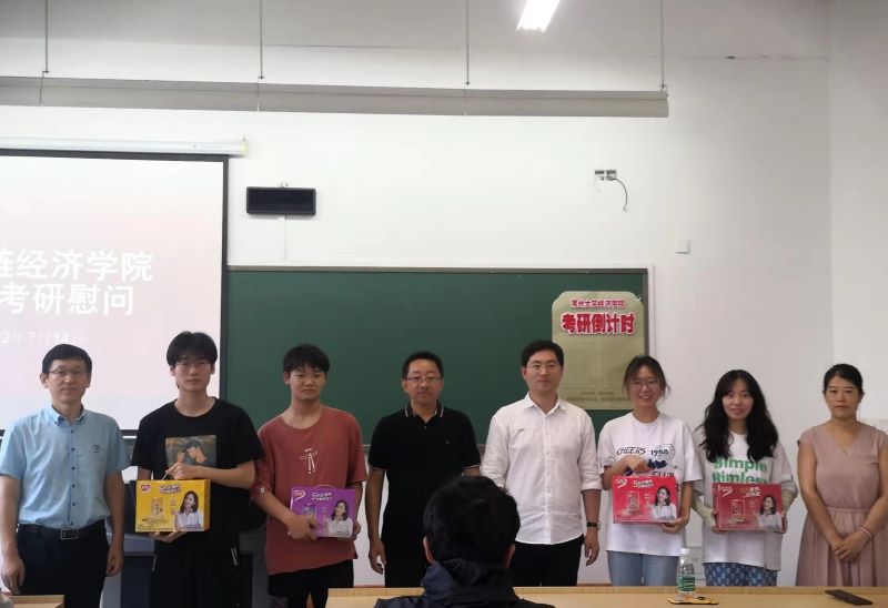 7月14日上午,51视频 在西太湖校区立德楼119举行暑期考研学子慰问活动。51视频 党委书记姜鸿、院长姜国刚、副院长任保全、党委副书记王彩芳老师出席活动,19级辅导员顾晗主持慰问活动。