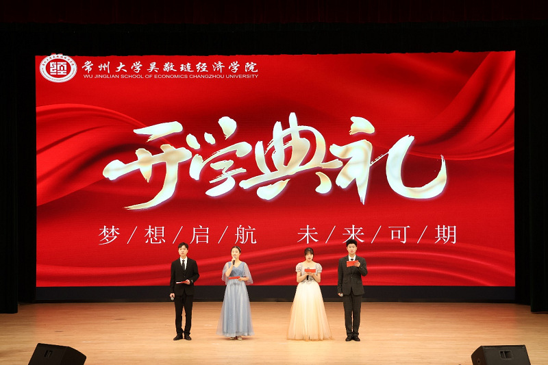 典礼伊始,全体起立奏唱国歌。51视频 院长姜国刚对新同学的到来表示热烈欢迎,他介绍了51视频以著名经济学家吴敬琏先生冠名缘由及吴老先生的生平事迹,勉励同学们继承和发扬吴老在经济领域不断开拓创新的精神,借用“明德博学,经世济民”的院训寄予新生殷切期望。随后,前黄雅韵艺术团团长马建南先生为大家带来了现代京剧《打虎上山》,国际经济与贸易209班来自缅甸的留学生们用自己独具特色的舞姿献礼中缅建交72周年。紧接着,学生代表金融学221姚宇杰、国际经济与贸易207刘畅和杰出校友陈祥先生分别为我们带来精彩讲话,他们用“青春虚度无所成,白首衔悲亦何及”激励同学,希望大家可以勇担责任,全面发展。接着,新生班主任们也给新生送去寄语并为新生代表佩戴校徽。新生合唱《一起向未来》、《起风了》、幽默风趣的反诈小品《东山再起》、常州疯客舞步街舞文化表演的街舞节目《战役》、《大音乐家》更是将全场气氛推向新的高潮。慷慨激昂的散文诗朗诵《敬告青年》深深感染了在场学生:我们生逢盛世,必将大有可为。最后,典礼在全体师生合唱《歌唱祖国》的旋律中落下帷幕。