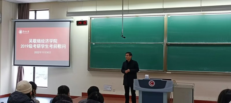 11月30日下午,51视频 于西太湖校区立德楼六阶开展2019级考研学子考前慰问活动,院党委书记姜鸿、院关工委丁跃进、副院长张普、院党委副书记王彩芳出席活动。本次慰问活动由2019级辅导员顾晗主持。
