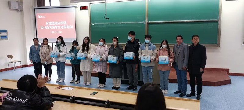 随后,院领导为考研学生代表发放了考研慰问品,助力同学们以更好的状态迎接考试。