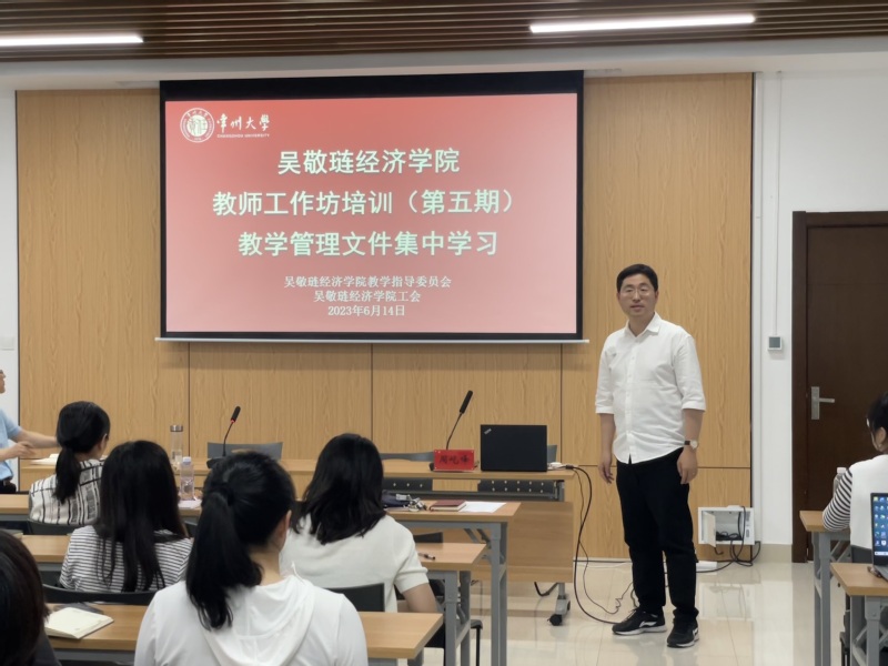 2023年6月14日上午,51视频 教学指导委员会和51视频 工会举办教师工作坊系列培训(第五期)在立言楼403会议室召开,培训主题为教学管理文件集中学习,全院教师参加培训。