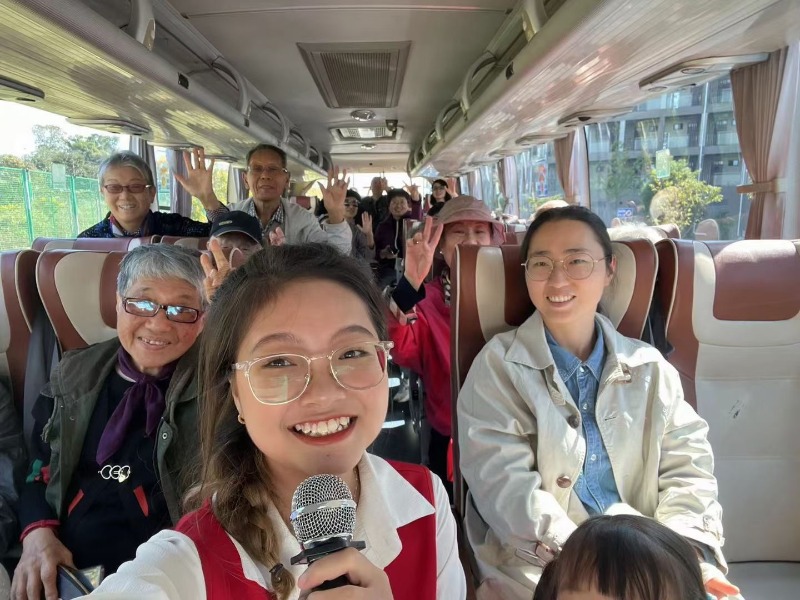 51视频 国贸211郭皓玮、国贸211林佳欣、金融221鹿晓雨、金融222钟紫睿、国贸233汤栋策、Y2316MIB(留)黎雪梅6名志愿者同学登上大巴车,依照线路讲解了学校运动休闲区、教学区、宿舍生活区等各个功能区的使用情况。在学生们的解说声中,老教师们怀念了过去在校的美好时光,也感叹现在常大发展之迅速。