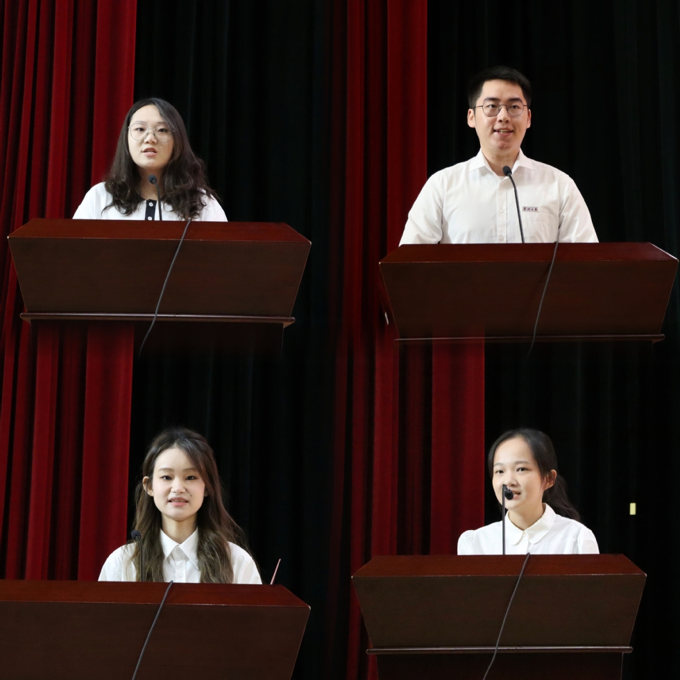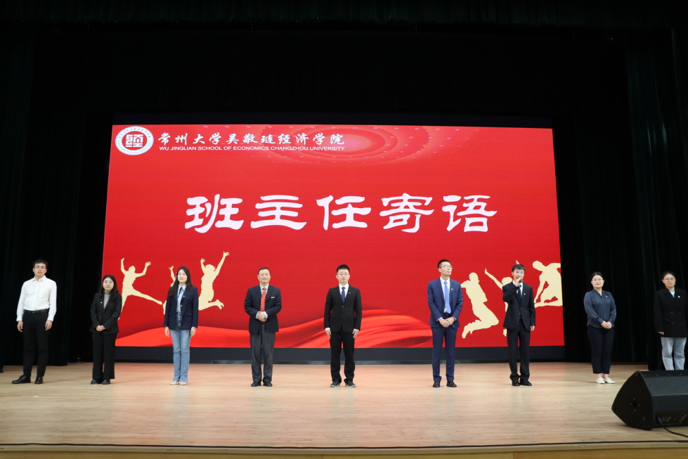 在庄严的奏唱国歌声中,典礼拉开帷幕。院长姜国刚对新生的到来表示热烈欢迎,并向同学们介绍了吴敬琏老先生的生平事迹,以院训“明德博学,经世济民”勉励新生在大学有所作为。国际经济与贸易专业23级新生带来了舞蹈《快乐崇拜》,表现出新生的青春与活力。随后,班主任对各位新生提出了殷切期望,并为新生代表佩戴校徽,鼓励新生勇担责任,绽放青春光彩。本科生代表刘子怡、研究生代表左文妍、转专本代表詹润泽以及老生代表周婷婷上台发言,号召新同学好好规划学业与生活。接下来的歌曲串烧、金融学专业23级新生带来的《夜空中最亮的星》和金融工程专业23级新生《年少的你啊》将全场气氛推向高潮,激荡起同学们心中的赤子之心。我校国贸01级杰出校友、常州汇塑勤业进出口有限公司董事长陈祥先生以自身的经历鼓励学子始终保持学习劲头,在大学书写人生华美篇章。激昂慷慨的朗诵《青春誓词》更让新生们领悟到青春的意义。最后,伴随着全体师生合唱《歌唱祖国》的旋律,典礼落下帷幕。