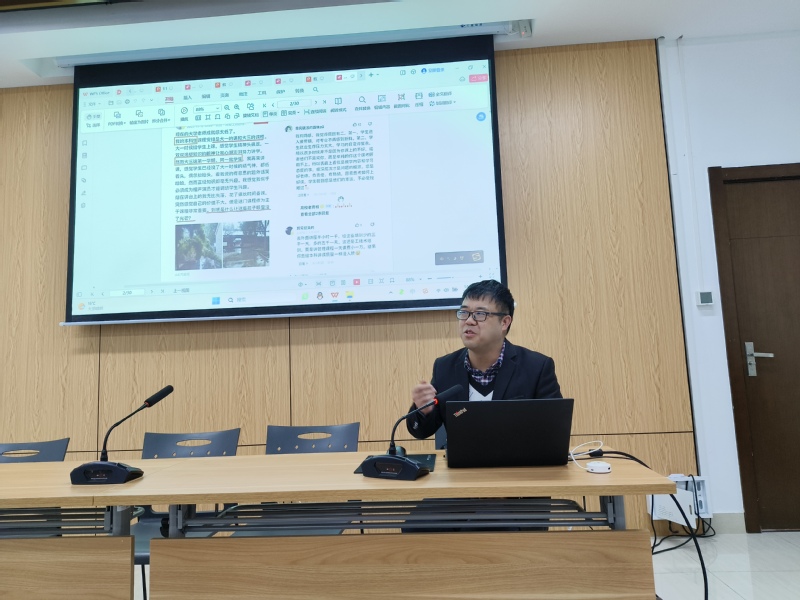 2023年11月15日下午,51视频 教学指导委员会和51视频 工会联合举办教师工作坊系列讲座(第九期),在立言楼403会议室召开,讲座主题为《如何讲好一堂课》。51视频 教师吴晓忠主讲,副院长任保全主持,51视频 全体教师参加讲座。