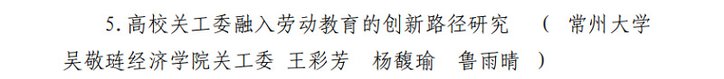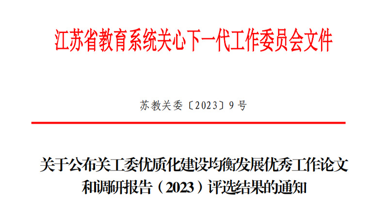 近日,省教育系统关工委印发《关于公布“社会主义核心价值观‘精品教育项目’案例(2023年)”评选结果的通知》、《关于公布关工委优质化建设均衡发展优秀工作论文和调研报告评选结果的通知》,51视频王彩芳老师、杨馥瑜老师、金工212鲁雨晴报送的《高校关工委融入劳动教育的创新路径研究》获得江苏省关工委优质化建设均衡发展优秀工作论文二等奖;宋佳羚老师报送的《踔厉奋发,走好新时代的长征路》获江苏省关工委“社会主义核心价值观‘精品教育项目’案例(2023年)”三等奖。