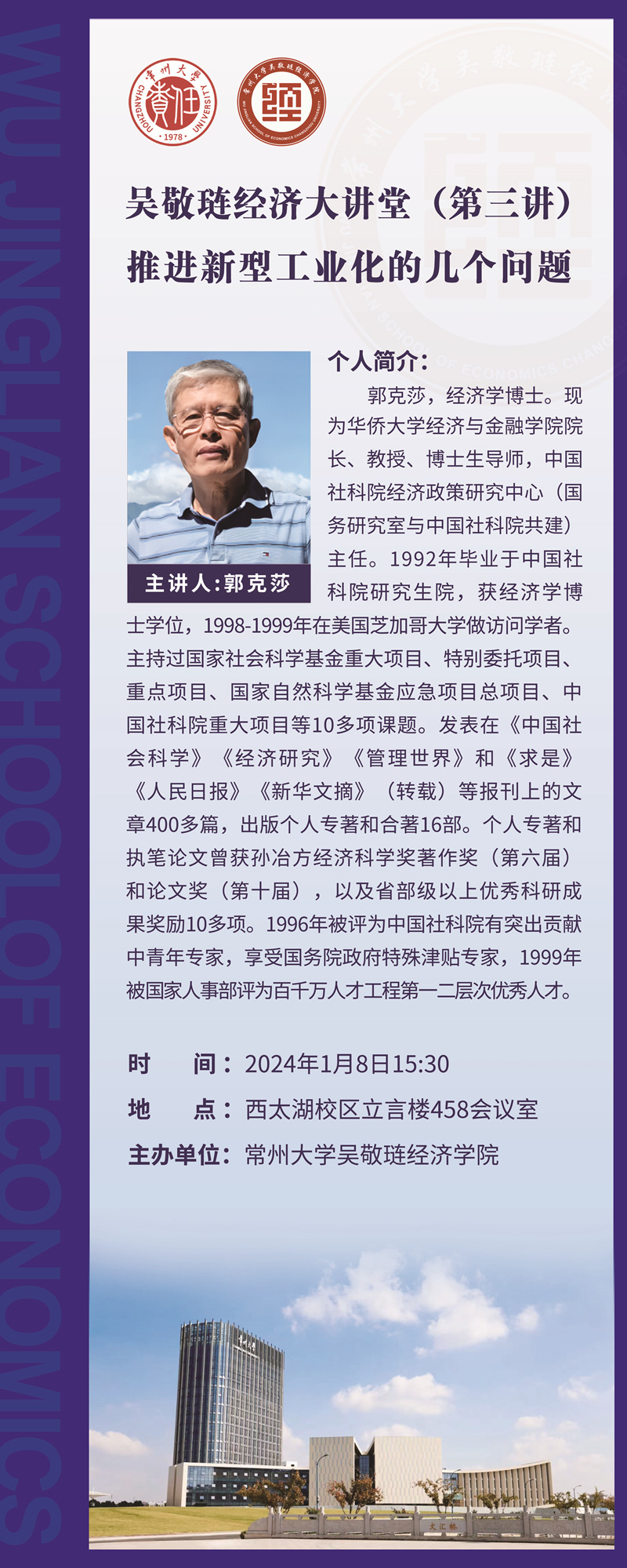 学术讲座:推进新型工业化的几个问题(1月8日)