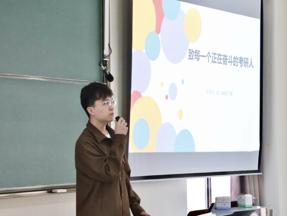 4月25日下午,2021级考研经验分享会在西太湖校区立德楼1阶举行。金融工程201班周婷婷(拟被南京审计大学录取)、金融工程202班张子健(拟被南京理工大学录取)应邀向2021级考研备考学生作经验分享。经验分享会由2021级辅导员宋佳羚主持。