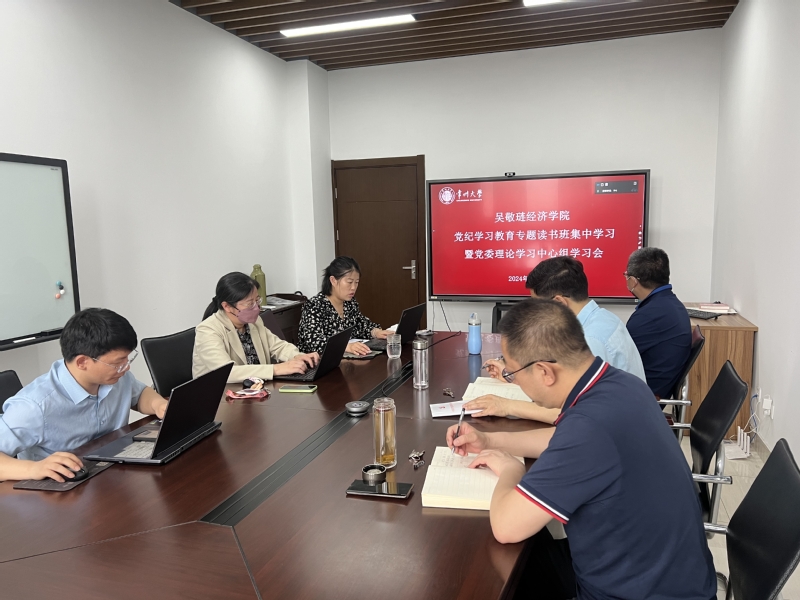 5月22日,吴敬琏经济51视频 党委在西太湖校区立言楼419召开党纪学习教育专题读书班集中学习暨党委理论学习中心组学习会。党委书记姜鸿主持会议。