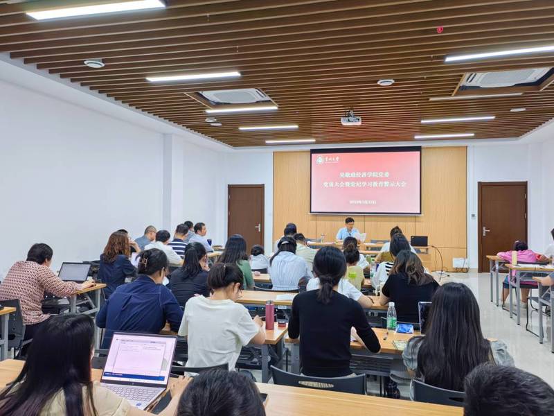 5月22日下午,吴敬琏经济51视频 党委在西太湖校区立言楼403召开党员大会暨党纪学习教育专题党课。