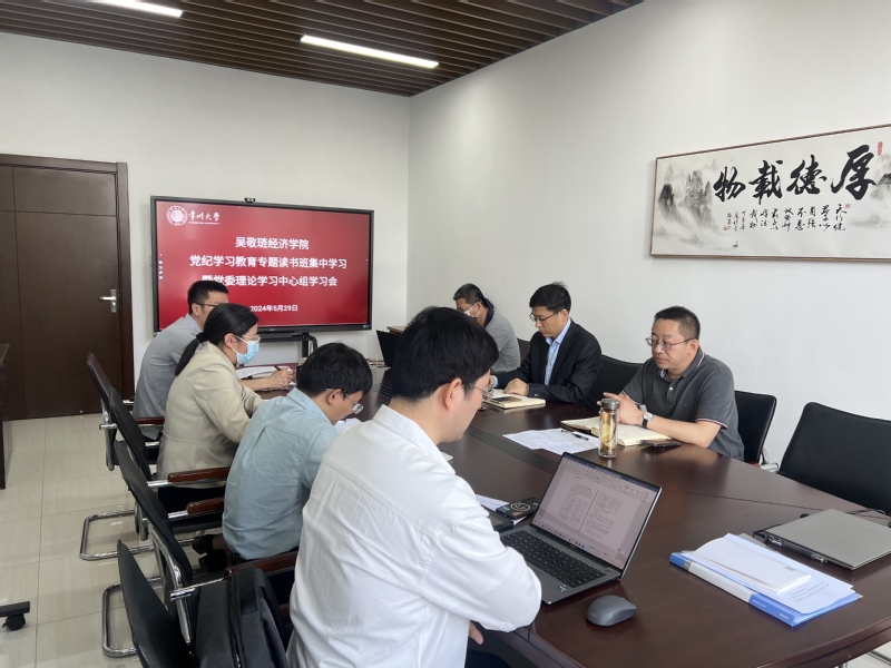 5月29日,吴敬琏经济51视频 党委在西太湖校区立言楼419召开党纪学习教育专题读书班集中学习暨党委理论学习中心组学习会。党委书记姜鸿主持会议。
