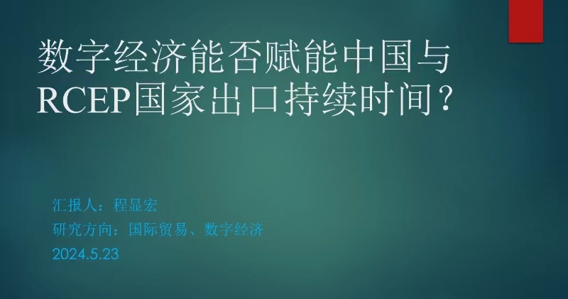 第一场人文之光讲座主讲教师为程显宏博士,主题为“数字经济能否赋能RCEP国家出口持续时间?”。主要围绕数字经济内涵、数字经济、区域创新与企业出口时间等内容展开。