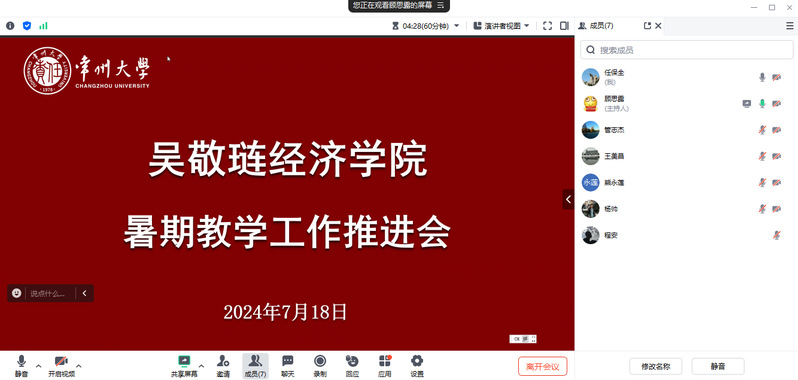 7月18日晚上19点半,51视频 线上开展暑期教学工作推进会。51视频 国贸专业负责人管志杰、国贸系副主任王美昌、国贸系副主任杨帅、金融系副主任熊永莲、金工系主任程安以及教务秘书顾思露参与会议。会议由任保全副院长主持。