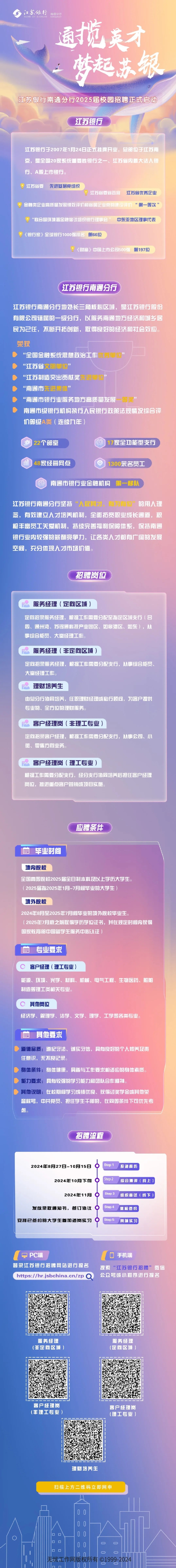 江苏银行南通分行2025届校园招聘正式启动