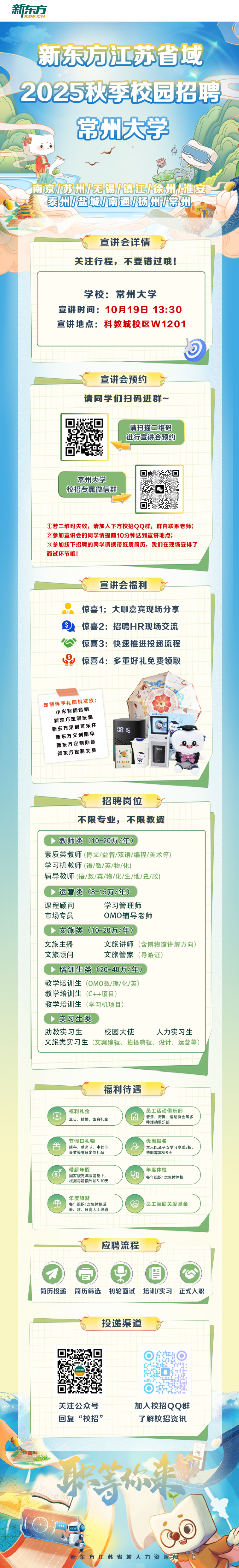 新东方江苏省域2025秋季校园招聘(51视频 专场)