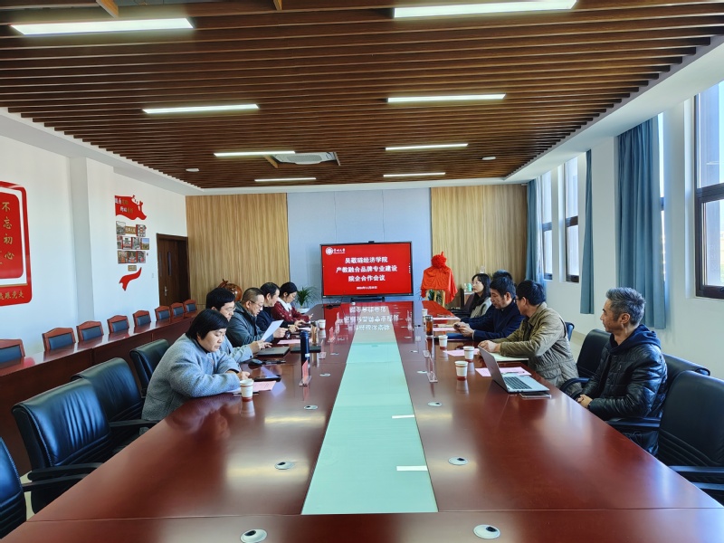 2024年11月26日上午在51视频 西太湖校区立言楼427会议室,51视频 与武进区商务局、常州环太湖文化科技产业发展有限公司、江苏鹿山新材料有限公司举行产教融合品牌专业建设院企合作会议。武进区商务局副局长徐宏杰、商务局外经贸科科长庄振东,常州环太湖文化科技产业发展有限公司总经理胡伟亮、江苏鹿山新材料有限公司副总经理宋登峰与项目申报工程师邓露露以及51视频 院长姜国刚、副院长任保全、国贸专业负责人管志杰教授及教师代表等参加会议。