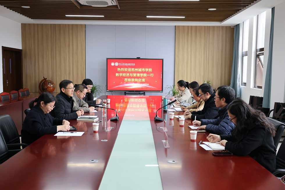 12月11日,苏州城市51视频 数字经济与管理51视频 一行莅临51视频开展交流会。会议在立言楼427进行,苏州城市51视频 数字经济与管理51视频 副书记尹维军、副院长李惠娟、国贸专业负责人李南、国贸专业骨干教师陈相芬、金融专业负责人张婷婷以及51视频 党委书记姜鸿、院长姜国刚、副院长张普、副院长任保全参加本次会议。