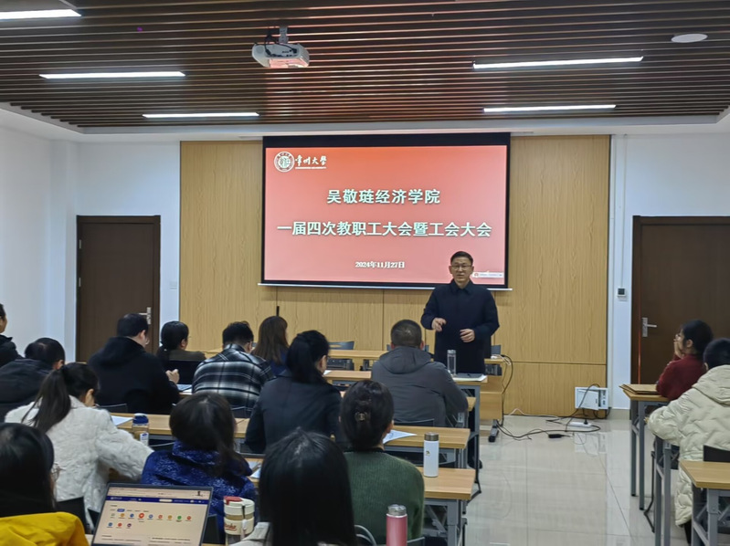 工会副主席杨帅老师作分工会年度报告。他首先总结了过去一年经济51视频 老师参与51视频 层面与学校层面工会活动的情况与取得的成绩;接下来他对2024年工会经费使用情况进行汇报;最后,杨帅老师对上一年度老师提交提案的办理情况一一进行通报说明,并发起征集新一年度提案。