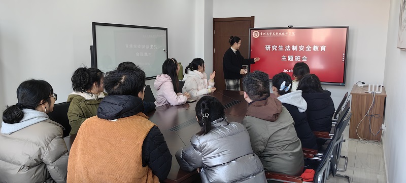 1月3日下午,51视频 研究生兼职辅导员施雪琴老师在立言楼419室召开研究生法治安全教育主题班会,旨在增强研究生的法治观念和安全意识,让同学们知法守法,平安度过寒假。