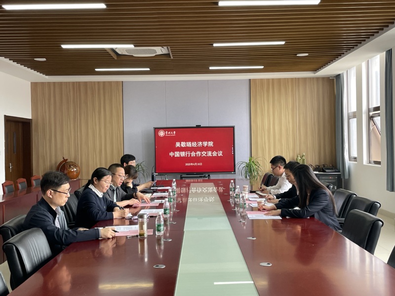 4月16日上午10时,51视频 于西太湖校区立言楼427会议室召开“中国银行产教融合交流会议”。中国银行金融科技部主任周和、人力资源部副主任蒋震、新北支行副行长蒋卓君以及51视频 院长姜国刚、党委副书记许丹丹、副院长张普、副院长任保全、金融专业系主任程安参与会议,会议由姜国刚院长主持。