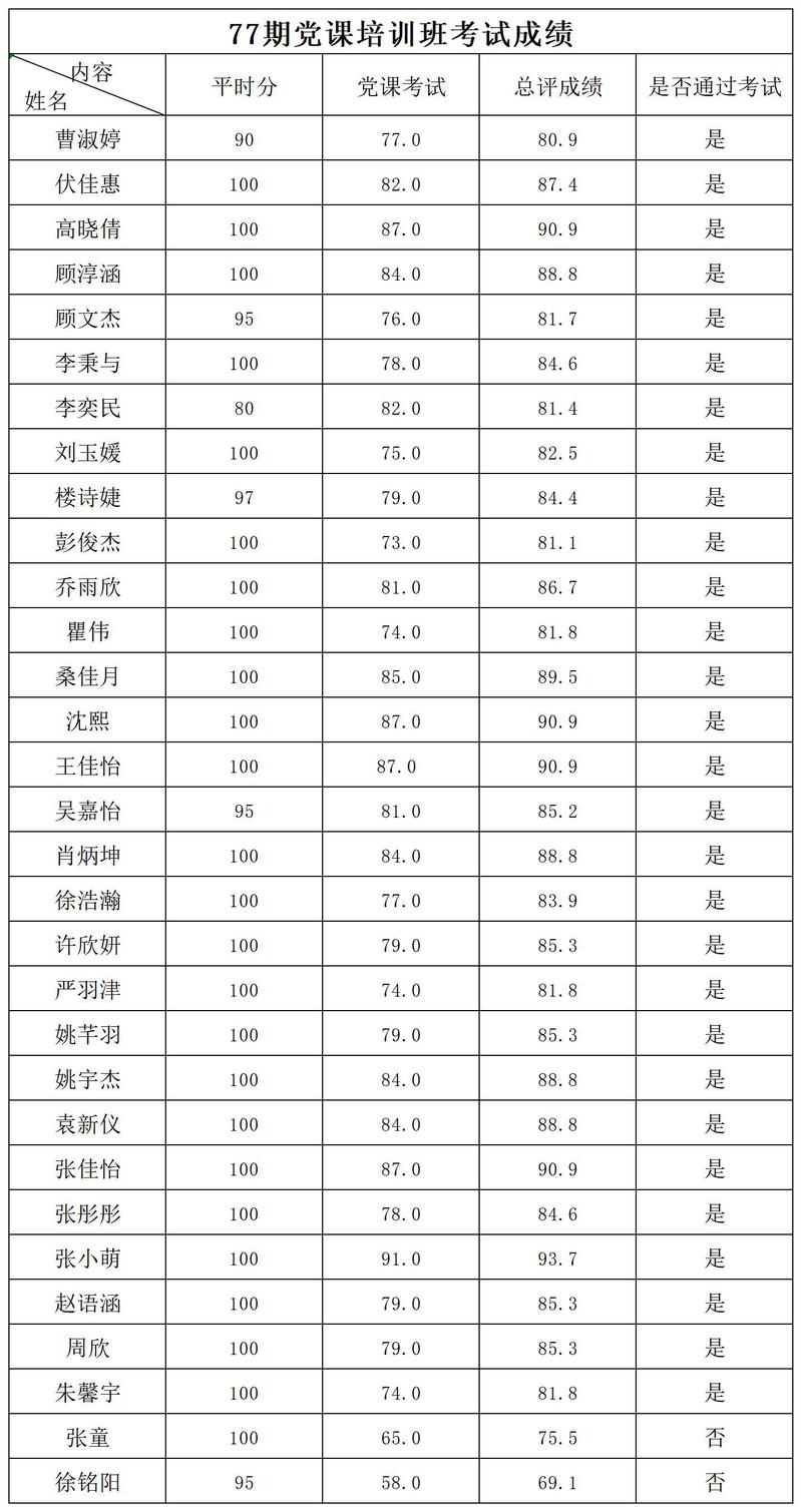 为贯彻落实习近平新时代中国特色社会主义思想,深入学习党章党规知识及党的有关文件内涵,51视频开展了第77期党章党规培训与考试。现将考核结果公示,名单如下: