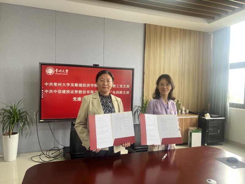 5月14日下午,中共51视频 金融金工教工党支部与中共中信建投证券股份有限公司常州广电西路支部党建共建签约仪式在立言楼427会议室举行,双方以党建引领推动校企合作迈上新台阶。