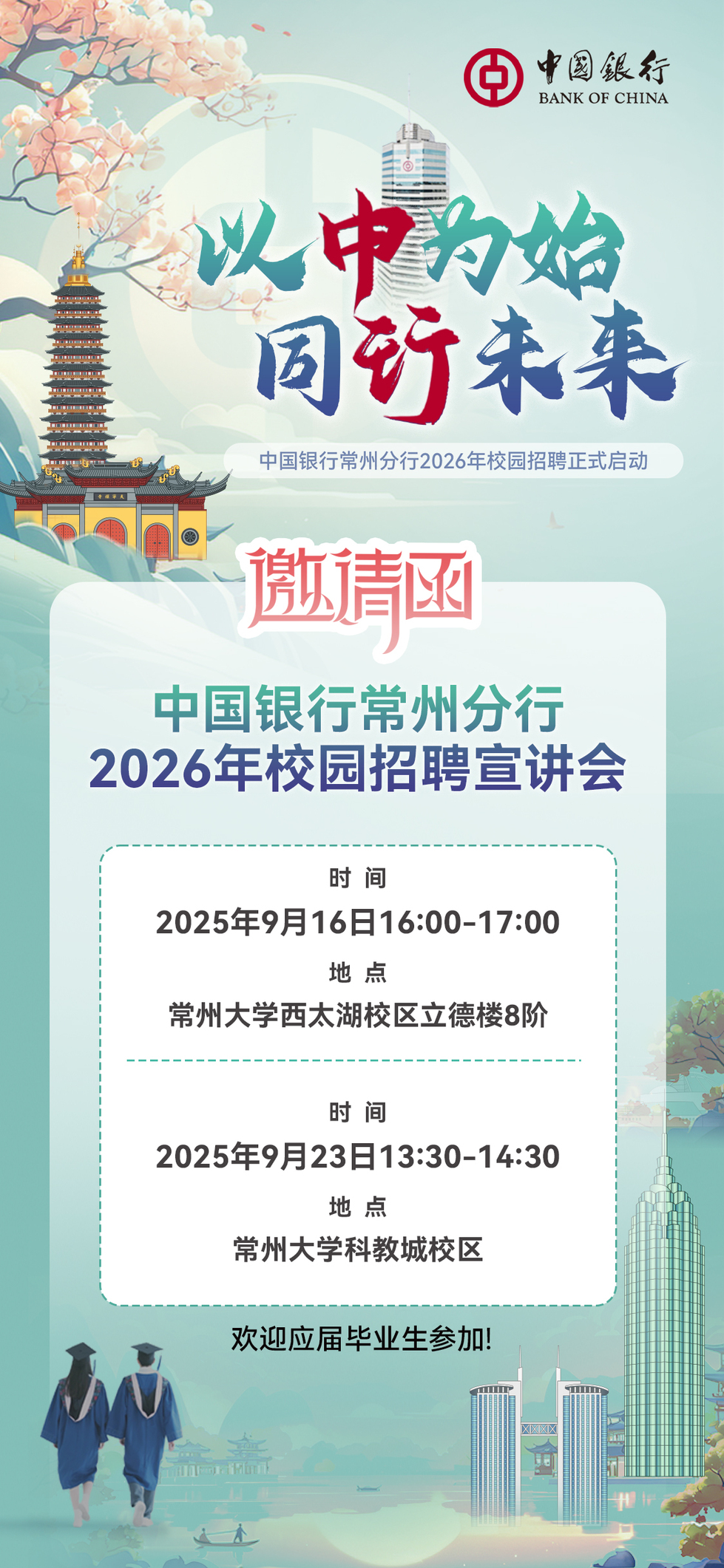 中国银行常州分行2026年校园招聘正式启动
