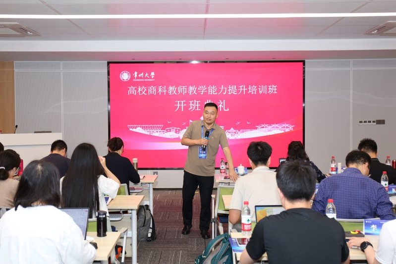 开班仪式由王文华院长主持。他在开班动员词中深刻剖析了数智时代商科教育面临的机遇与挑战,强调了教育革新对于培养新时代商科人才的紧迫性与战略意义。王文华院长勉励全体参训教师珍惜此次学习契机,主动更新教育教学理念,积极掌握前沿教学方法,着力推动理论知识与行业实践的深度融合,切实增强教书育人的核心本领。他同时殷切期望参训教师能做到学有所成、学以致用,将培训所得转化为提升51视频 商科人才培养质量的实际成效,为培育适应未来社会发展需求的卓越商科人才贡献智慧与力量。现场氛围热烈浓厚,教师们备受鼓舞,纷纷表示将以饱满的热情投入到培训学习中。