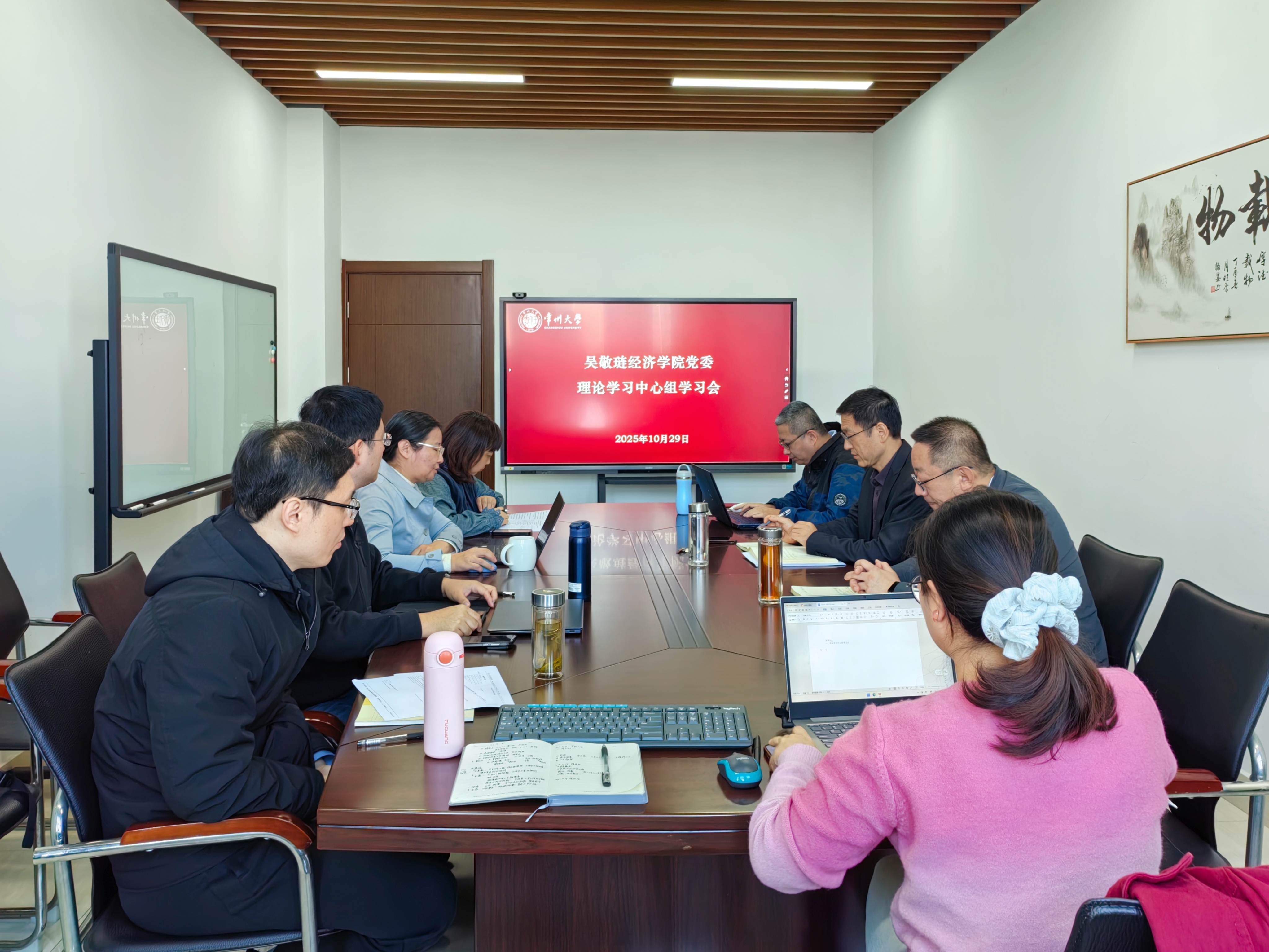 张普领学了习近平总书记在《求是》杂志2025年第18期和第19期发表的重要文章《纵深推进全国统一大市场建设》和《中华民族共同体的形成和发展是人心所向、大势所趋、历史必然》。张普指出,作为高校教师和科研管理人员,在实践中可以从以下几个方面着手:一是积极将最新的政策思想融入课堂教学,向学生和社会大众清晰、准确地解读这项政策的深刻内涵、理论依据和现实意义,凝聚社会共识;二是密切跟踪政策推进过程中的新情况、新问题,运用所掌握的专业知识进行分析,为政策的优化调整提供学理支持;三是围绕其中的重点难点问题,开展前瞻性、创新性的研究,为破解改革难题、推动理论创新贡献智慧。(文/摄 狄静 审核/姜鸿 编辑/狄静)