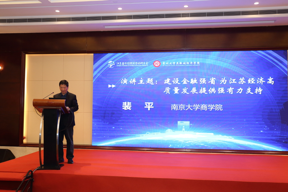 (图为南京师范大学商学院蒋伏心教授作主旨演讲)