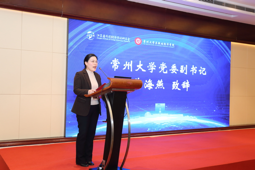 开幕式由学会秘书长、金陵科技学院副校长顾晓燕教授主持。江苏省哲学社会科学界联合会党组书记、副主席张新科教授,51视频 党委副书记黄海燕教授,学会会长、南京大学商学院于津平教授分别作开幕式致辞。黄海燕副书记在欢迎辞中介绍了51视频 的发展历程与办学特色,她提到,学院自开设国际经济与贸易专业以来,紧盯学术前沿,整合优势资源推进学科建设,深度服务地方能源产业与绿色经贸高质量发展,始终致力于培养兼具理想信念、爱国情怀、科学精神、协作品质与国际视野的高素质创新型人才。
