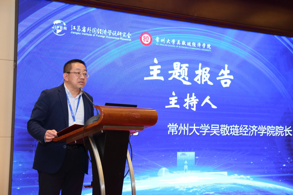 (图为江苏大学财经学院院长胡绪华教授主持主旨演讲环节)