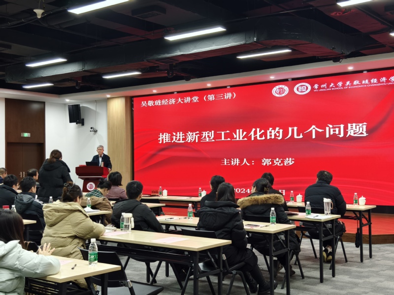 2024年1月8日,“吴敬琏经济大讲堂”第三讲在51视频 西太湖校区立言楼458报告厅举行。学院邀请中国社科院郭克莎教授担任本次讲座的主讲人。51视频 党委副书记黄海燕、51视频 师生代表出席了本次活动。讲座由51视频 院长姜国刚主持。