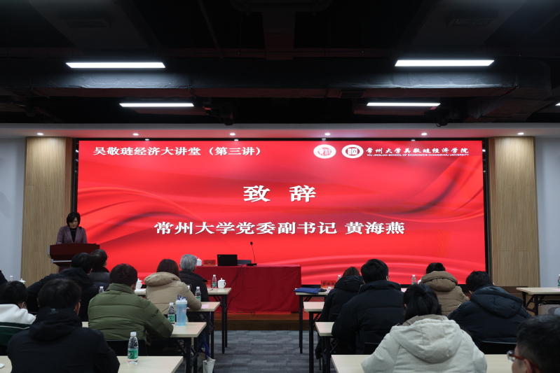 黄海燕书记致欢迎词。她首先对郭克莎教授的到来表示衷心的感谢和诚挚的欢迎,并指出,本次“吴敬琏经济大讲堂”第三讲,既是贯彻落实习近平总书记关于经济学科建设重要指示精神的积极探索,也是传承弘扬以吴敬琏老师为代表的老一辈经济学家“敬畏规律、守护真理”学术精神的具体实践。希望学院以此次活动为契机,聚焦立德树人,持续凝练名人精神,把学院打造成经济学科发展“高地”,持续提升服务地方经济社会发展的能力。