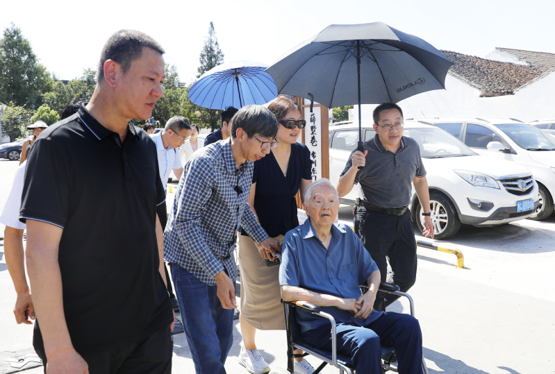 学院院长姜国刚陪同吴老参观遥观镇吴氏宗祠