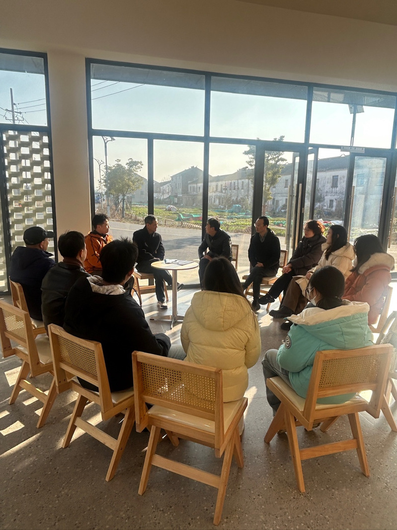 调研首站来到渔庄村。课题组重点了解渔庄村产业发展概况及农业综合服务中心建设运营情况。日前,位于该村的“稻梦空间”遥观农创中心已建成投用。该中心由旧厂房改造提升而成,集加工、展示、体验于一体,成为渔庄村推动产业升级、增强集体经济造血能力的重要载体。调研过程中,课题组结合项目推进实际,关注其在招商引资与市场化运营方面面临的成本压力与推进难点,并围绕生态园与农业综合服务中心“打包运营”、康养产业培育、配套服务完善、特色农产品销售等发展思路,就闲置资产活化路径、风险防控机制与收益分配模式等问题与相关负责人开展深入讨论,力求形成更具可行性的运营优化建议。