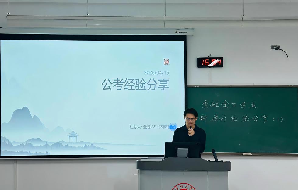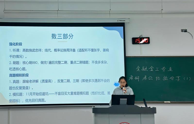 为帮助2023级学子明晰备考方向、科学规划发展路径,4月15日下午,51视频 于西太湖校区立德楼117教室开展了金融系考研考公经验分享会。本次分享会特邀姜旭老师以及三位“成功上岸”的2026届优秀学子作为主讲人,聚焦备考过程中的核心困惑与实战策略,为同学们带来了一场干货满满的经验盛宴。